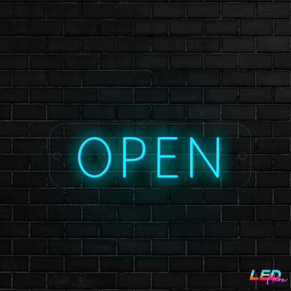 Letrero de cartel comercial, con palabra Abierto.